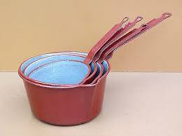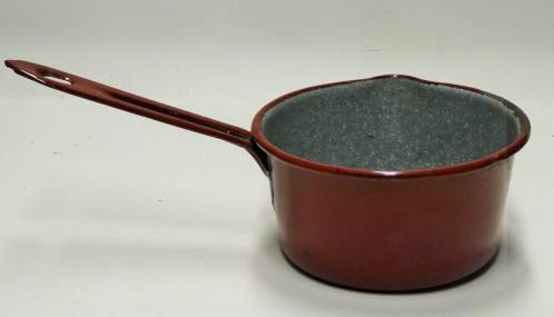petite casserole avec bec verseur bordeaux et gris intéreur