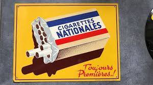 plaque métallique publicitaire avec le dessin d'un paquet de cigarettes