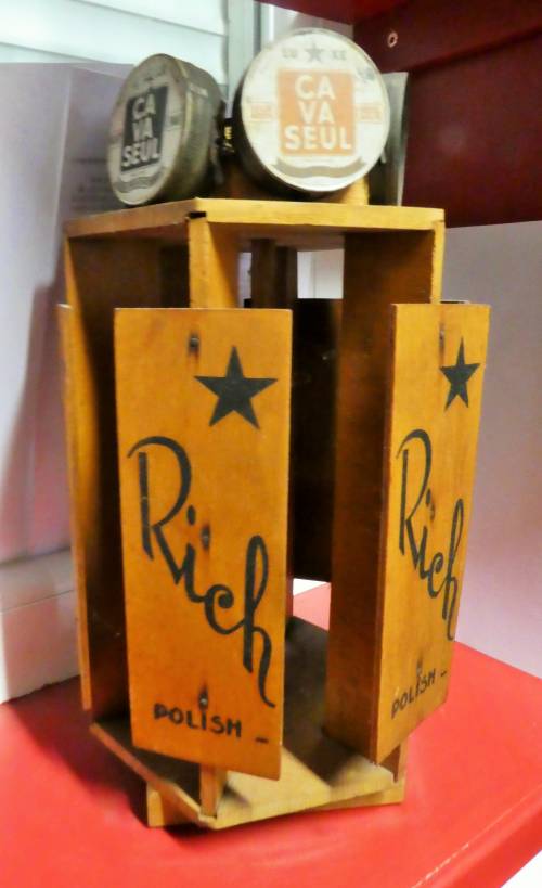 présentoir en bois pour la présentation des boites de cirage CA-VA-SEUL