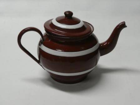 théière avec bec verseur couleur bordeaux avec liseré blanc