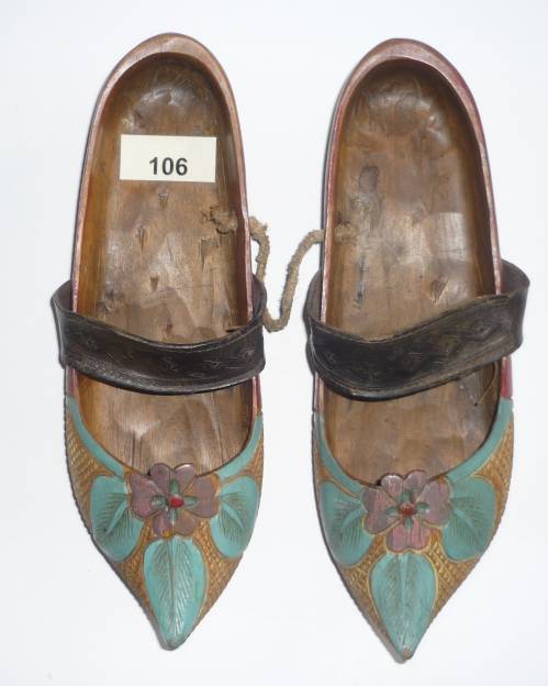 Empeigne très richement décorée de feuilles et d'une fleur sur fond finement quadrillé.