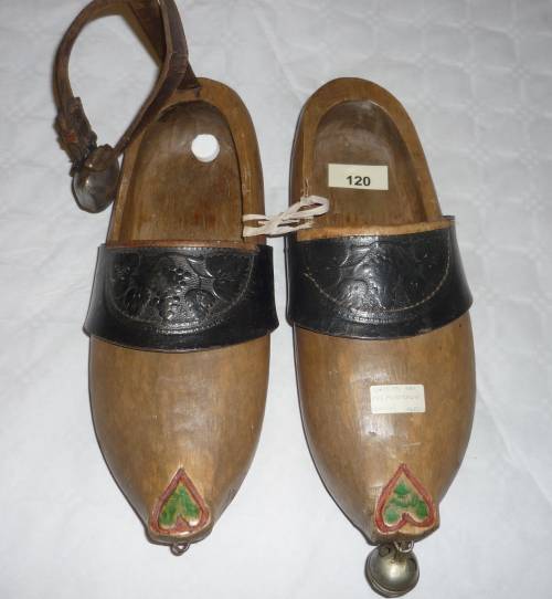 Le sabot droit comporte à l'arière une tige de fer sur laquelle est fixée une courroie en cuir maintenant une clochette.