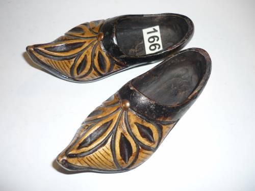 Décor de feuilles stylisés, à la gouge, dans un écusson, polychrome noir et crème, agrémenté d'un clou en cuivre