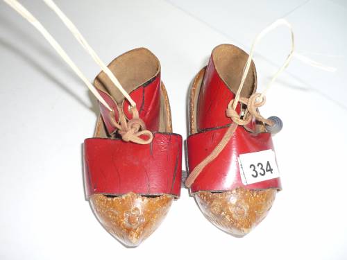 Talonnière en cuir rouge à oeillets et lacets, clouée à l'intérieur du sabot