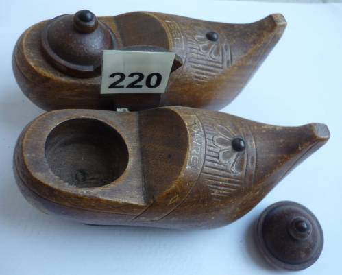 Paire de sabots posés sur un support formant un ensemble "sel et poivre"