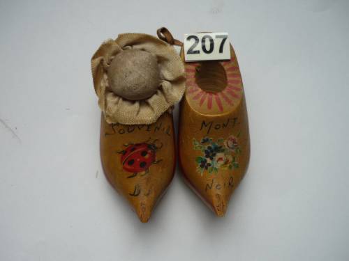 Petite paire de sabots "souvenirs" pour aiguilles et dé de coutière.