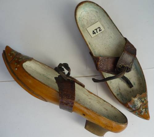 Paire de scoques à double bride frappée, clouée et lacée au moyen d'un ruban de coton